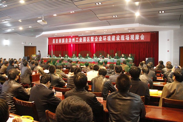結 束現(xiàn)場觀摩后,觀摩團一行在阜康工業(yè)園多功能廳召開會議。會上,王洪欣作首先簡要介紹了企業(yè)發(fā)展基本情況,多年來,在自治區(qū)黨委、人民政府和自治區(qū)國資 委、自治區(qū)環(huán)保廳、昌吉州及社會各界各部門的關心支持下,公司依托新疆的優(yōu)勢資源,逐步發(fā)展壯大。尤其是中央新疆工作座談會以來的兩年里,公司緊緊抓住國 家對新疆實施差別化產(chǎn)業(yè)政策的難得機遇,在阜康兩地投資150多億元,規(guī)劃建設了中泰化學阜康工業(yè)園和大黃山工業(yè)園。隨著