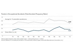 Trends in Occupational Accidents (Total Accident Frequency Ratio) Sustainability Report 2013 日產(chǎn)汽車 NI