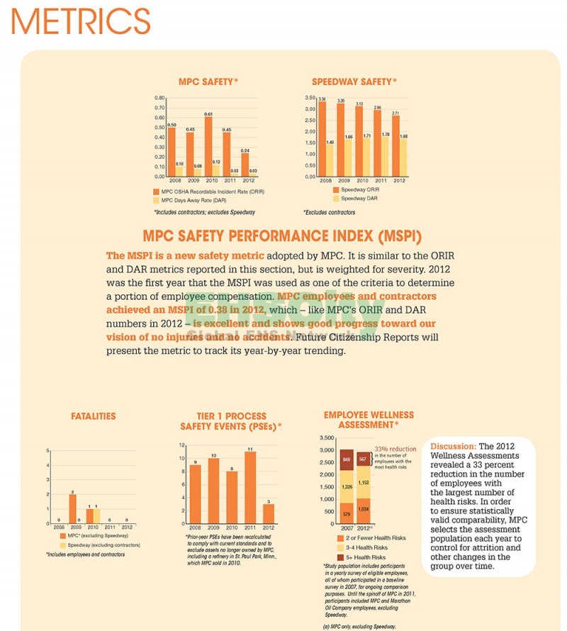 Safety and Health Metrics 馬拉松原油公司(MARATHON PETROLEUM) 2012Citizenship Report