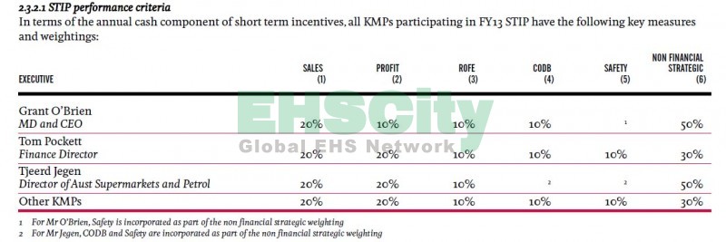 Safety is incorporated as part of the non financial strategic weighting 澳大利亞伍爾沃斯公司(WOOLWORTHS)