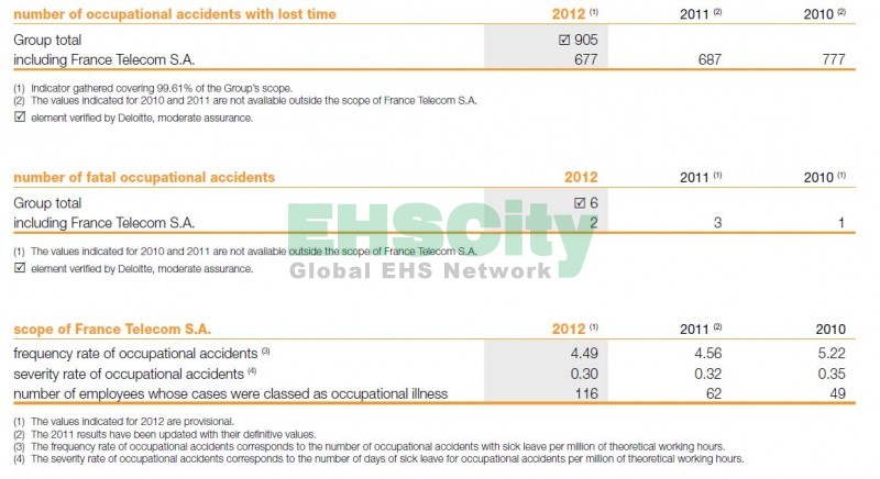Occupational accidents FRANCE TéLéCOM Sustainability report 2012