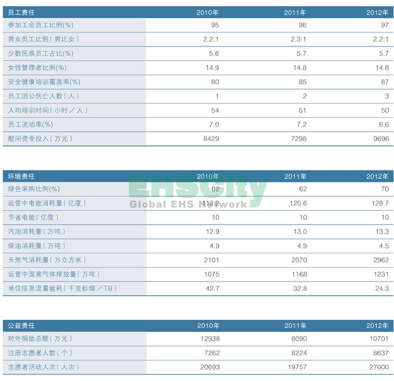 因公傷亡,環(huán)境績效,中國電信集團公司2012年社會責任報告