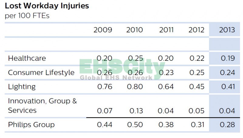 Philip Lost Workday Injuries 飛利浦每100名全職員工受傷誤工人數(shù)