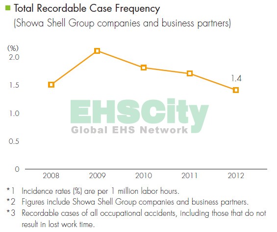 Total Recordable Case Frequency Showa Shell Sekiyu CSR Report2013