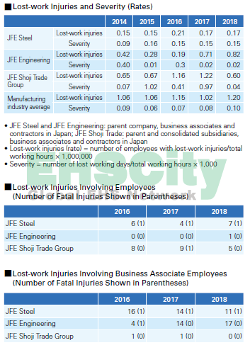 Rate of lost-work time injuries日本鋼鐵工程控股公司(JFE HOLDINGS) csr2018