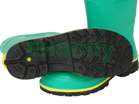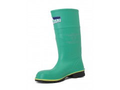 A chemically protective anti-static boot with an integral steel toe cap and vulcanized rubber sole for superior slip resistance.