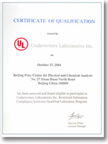 PONY譜尼測(cè)試作為負(fù)責(zé)起草RoHS IEC 62321國(guó)際標(biāo)準(zhǔn)的唯一中方代表單位,也參與了中國(guó)RoHS國(guó)家標(biāo)準(zhǔn)的起草制訂,并且是審定該國(guó)家標(biāo)準(zhǔn)的唯一一家第三方檢測(cè)機(jī)構(gòu),多次協(xié)助國(guó)家工信部、國(guó)家商務(wù)部在全國(guó)各地舉行RoHS指令推進(jìn)會(huì);2002年成為摩托羅拉在亞洲授權(quán)的唯一材料分析實(shí)驗(yàn)室,成為全球最早進(jìn)入RoHS領(lǐng)域的檢測(cè)機(jī)構(gòu);2004年獲得美國(guó)UL授權(quán)RoHS檢測(cè)化學(xué)實(shí)驗(yàn)室資格;2005年通過(guò)中國(guó)質(zhì)量認(rèn)證中心(CQC)的評(píng)定,成為其首批指定的RoHS檢測(cè)實(shí)驗(yàn)室;2005年順利通過(guò)松下總部組織的全球二十家實(shí)驗(yàn)室的現(xiàn)場(chǎng)考核,獲得其簽約檢測(cè)機(jī)構(gòu)資格;2007年榮譽(yù)成為工商局指定RoHS電子產(chǎn)品檢測(cè)機(jī)構(gòu),負(fù)責(zé)對(duì)市場(chǎng)流通領(lǐng)域(如商場(chǎng)、電子市場(chǎng)、超市等)中電子產(chǎn)品質(zhì)量安全的抽查工作;同年自主研發(fā)的“綠色電子產(chǎn)品質(zhì)量評(píng)價(jià)體系”榮獲國(guó)家科技部創(chuàng)新基金證書;2008年P(guān)ONY譜尼測(cè)試成為中國(guó)機(jī)電產(chǎn)品進(jìn)出口商會(huì)指定檢測(cè)機(jī)構(gòu)。