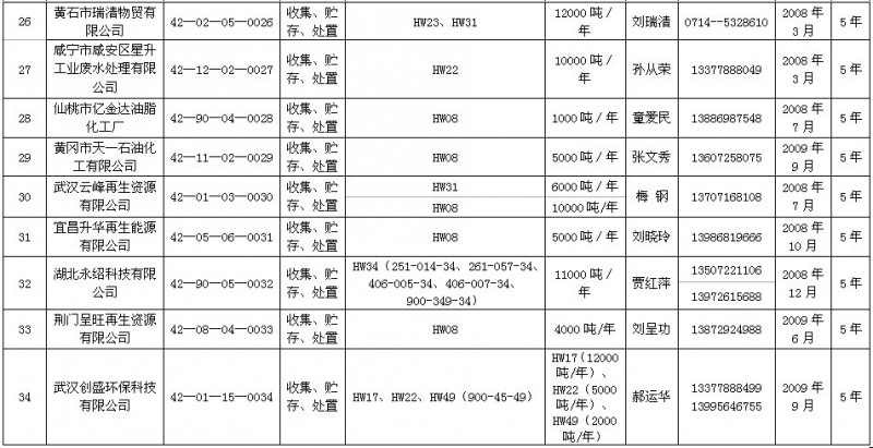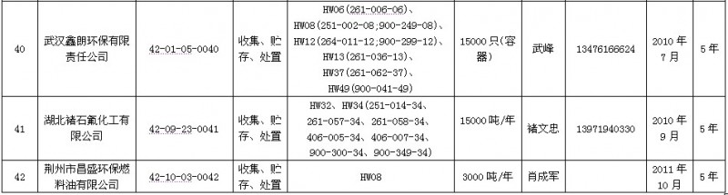 《湖北省危險(xiǎn)廢物經(jīng)營許可證》單位名錄