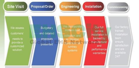 4. Turnkey Installation. Clean Air America, Inc. provides complete on-site assembly of the system, including air filtration equipment, source capture devices such as clean air hoods, fume arms, etc., along with spark protection and ductwork.