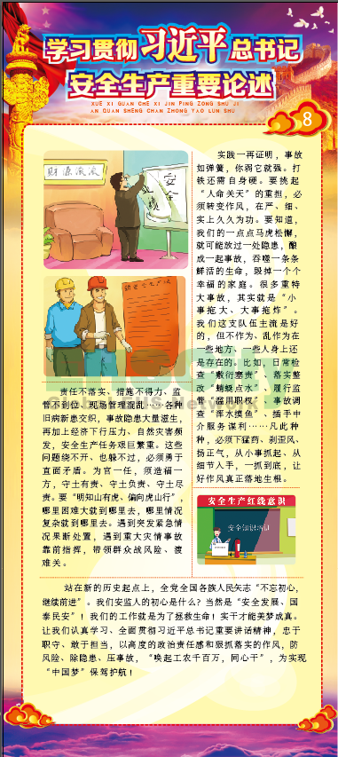 6 ZAK0006 學(xué)習(xí)貫徹習(xí)總書記關(guān)于安全生產(chǎn)重要論述宣教展板 8張/套 1440元