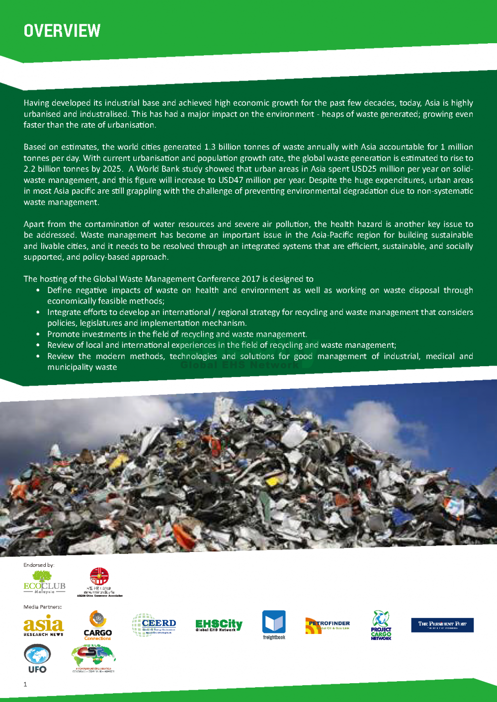 The hosting of the Global Waste Management Conference 2017 is designed to