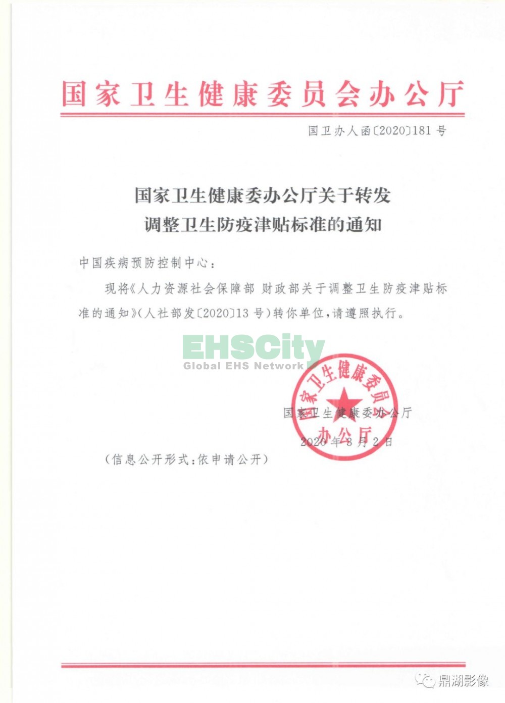 國(guó)家衛(wèi)生健康委辦公廳關(guān)于轉(zhuǎn)發(fā)調(diào)整衛(wèi)生防疫津貼標(biāo)準(zhǔn)的通知: