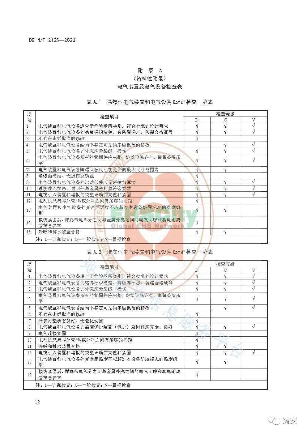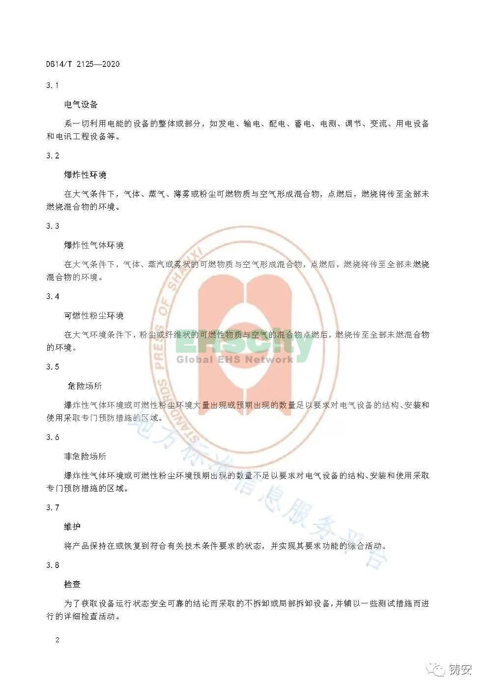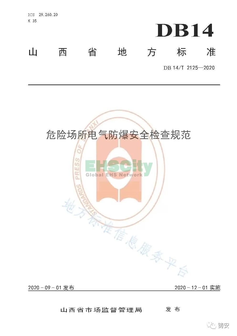 DB14T2125-2020FDIS 危險(xiǎn)場(chǎng)所電氣防爆安全檢查規(guī)范,2020年12月1日起實(shí)施