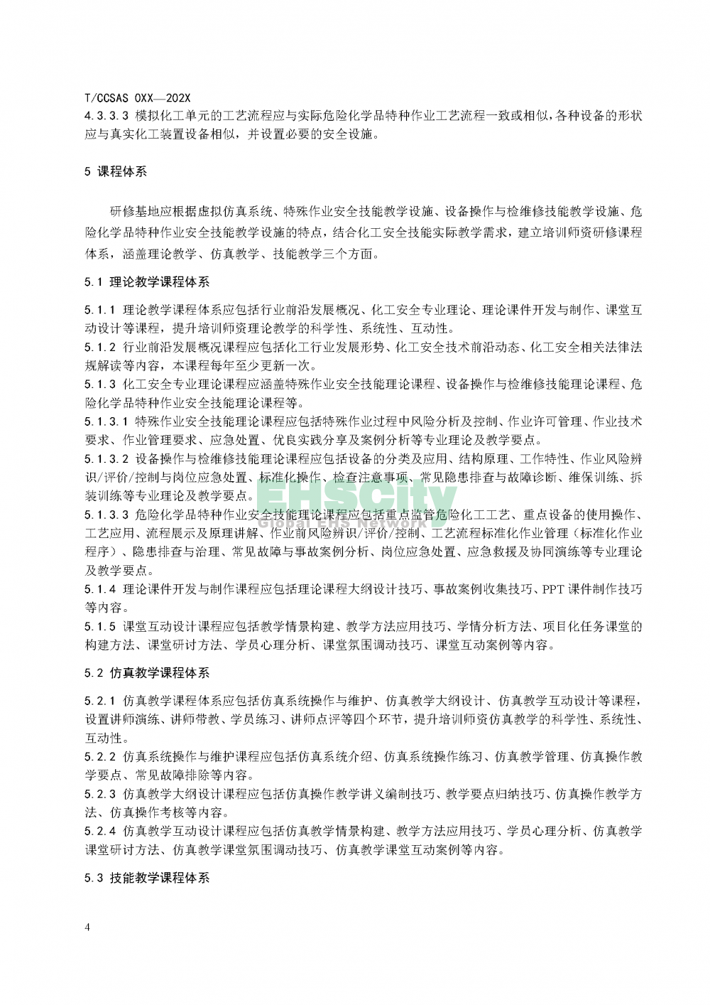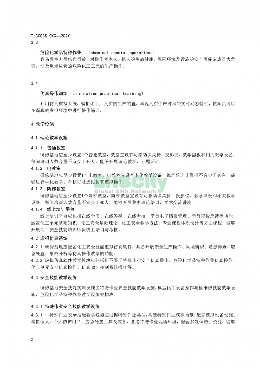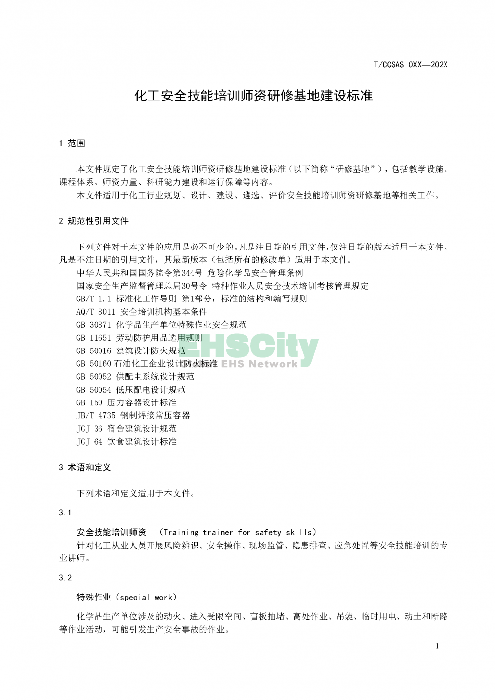 《化工安全技能培訓師資研修基地建設(shè)標準(征求意見稿)》