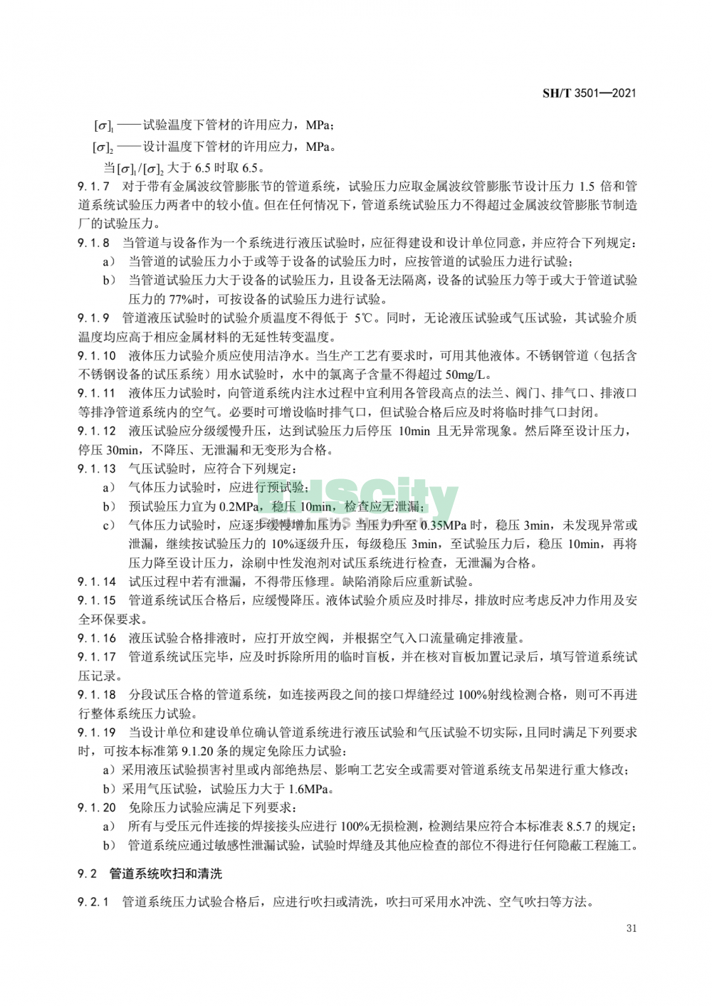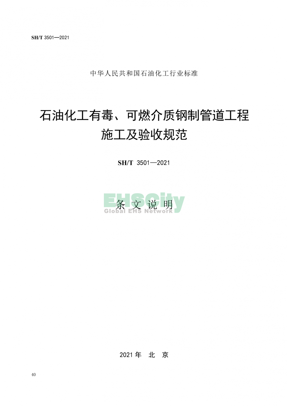 SH/T 3501《石油化工有毒、可燃介質(zhì)鋼制管道工程施工及驗收規(guī)范》2022年2月1日起實施