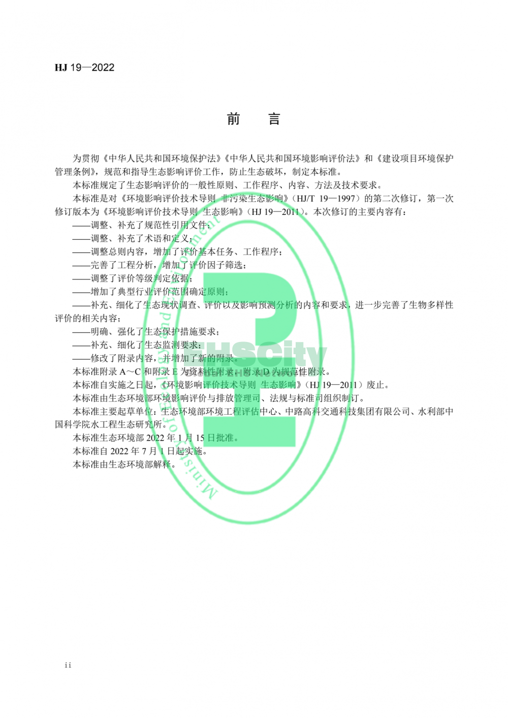 《環(huán)境影響評(píng)價(jià)技術(shù)導(dǎo)則 生態(tài)影響(HJ19-2022代替 HJ19-2011)》全文發(fā)布 2022 年 7 月 1 日起實(shí)施