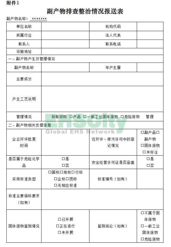 附件:1. 副產物排查整治情況報送表