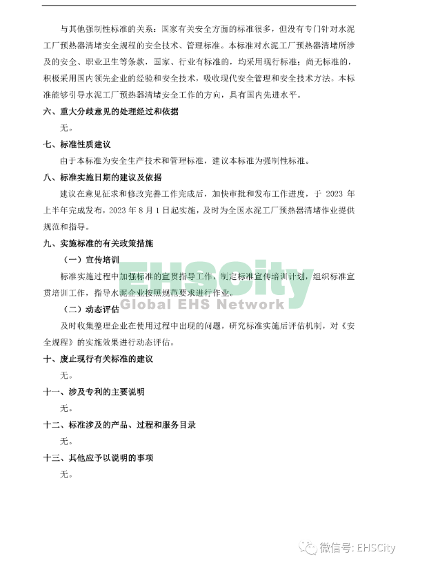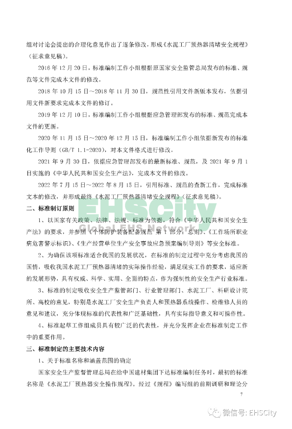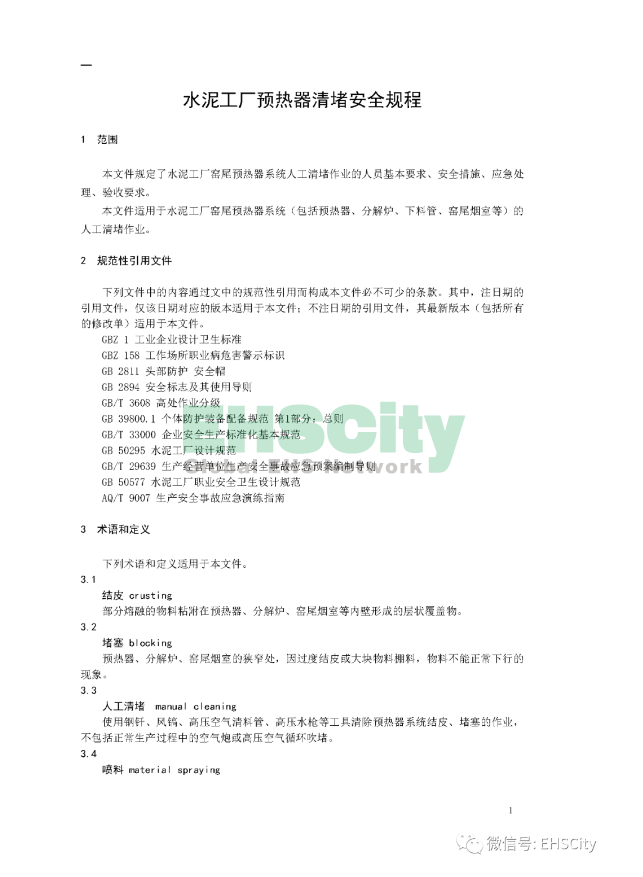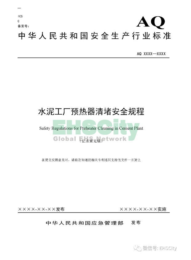 《水泥工廠預(yù)熱器清堵安全規(guī)程》(征求意見稿)