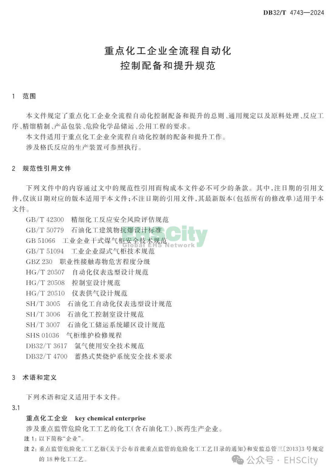 DB32/T 4743-2024《重點(diǎn)化工企業(yè)全流程自動化控制配備和提升規(guī)范》自2024年5月26日起實(shí)施