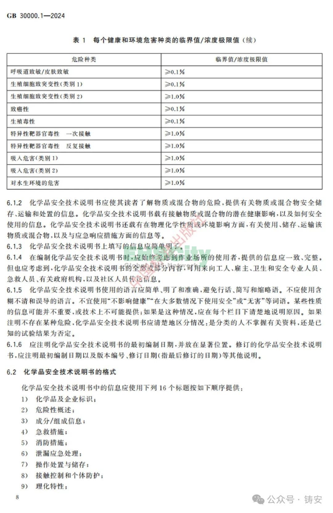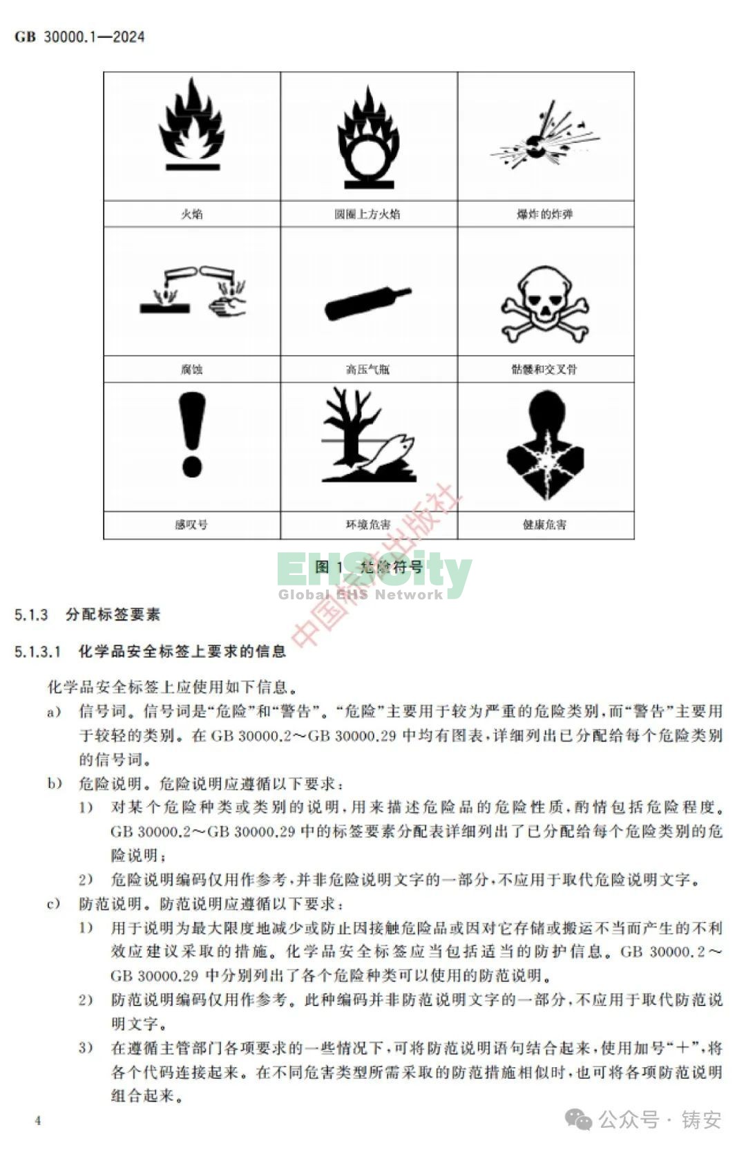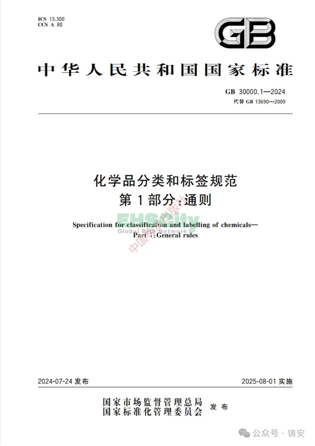 GB30000.1-2024 化學(xué)品分類和標(biāo)簽規(guī)范 第1部分:通則 2025年8月1日實施