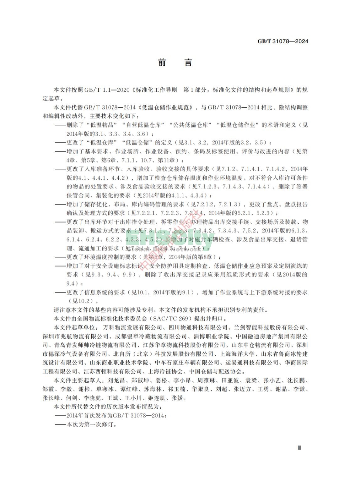 由全國(guó)物流標(biāo)準(zhǔn)化技術(shù)委員會(huì)提出并歸口,中國(guó)倉(cāng)儲(chǔ)與配送協(xié)會(huì)組織修訂的國(guó)家標(biāo)準(zhǔn)《低溫倉(cāng)儲(chǔ)作業(yè)規(guī)范》(GB/T 31078—2024),已由國(guó)家市場(chǎng)監(jiān)督管理總局(國(guó)家標(biāo)準(zhǔn)化管理委員會(huì))2024年7月24日批準(zhǔn)發(fā)布(2024年第15號(hào)公告),該標(biāo)準(zhǔn)替代《低溫倉(cāng)儲(chǔ)作業(yè)規(guī)范》(GB/T 31078—2014),于2024年11月1日實(shí)施。