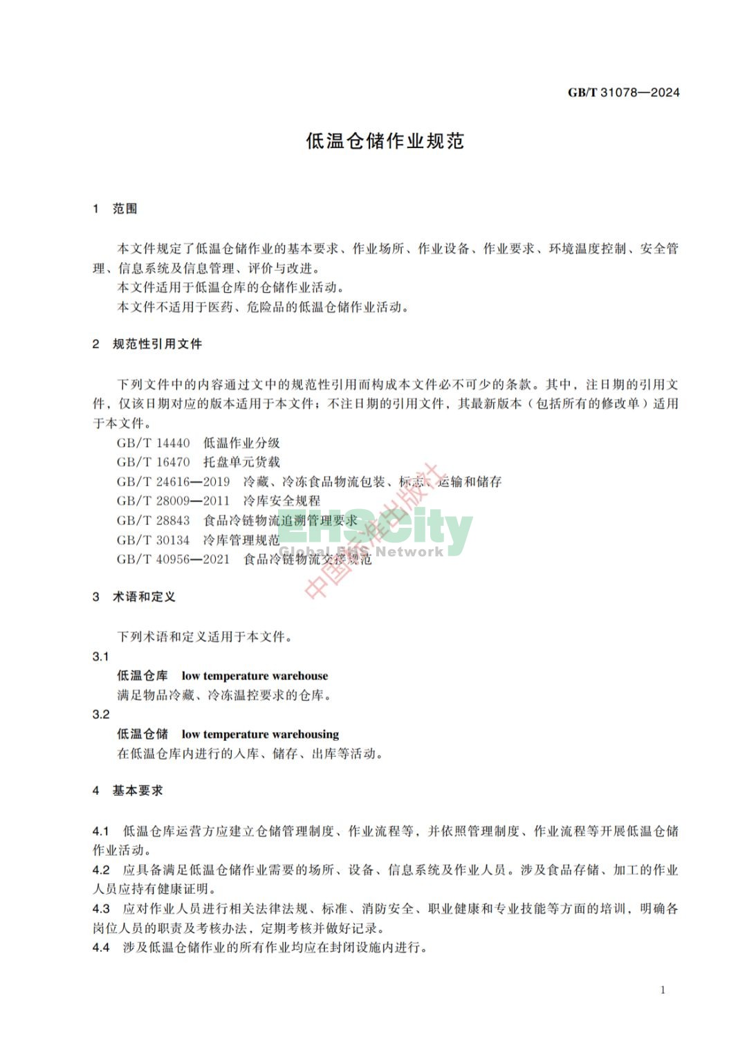 國(guó)家標(biāo)準(zhǔn)《低溫倉(cāng)儲(chǔ)作業(yè)規(guī)范》(GB/T 31078—2024)規(guī)定了低溫倉(cāng)儲(chǔ)作業(yè)的基本要求、作業(yè)場(chǎng)所、作業(yè)設(shè)備、作業(yè)要求、環(huán)境溫度控制、安全管理、信息系統(tǒng)及信息管理、評(píng)價(jià)與改進(jìn)。該標(biāo)準(zhǔn)的發(fā)布實(shí)施,將為企業(yè)建立規(guī)范的低溫倉(cāng)儲(chǔ)作業(yè)體系提供依據(jù),有助于提升倉(cāng)儲(chǔ)作業(yè)運(yùn)營(yíng)水平,助力企業(yè)自身持續(xù)優(yōu)化升級(jí),推動(dòng)冷鏈物流高質(zhì)量發(fā)展。