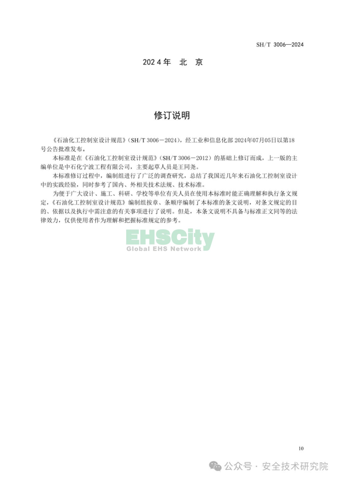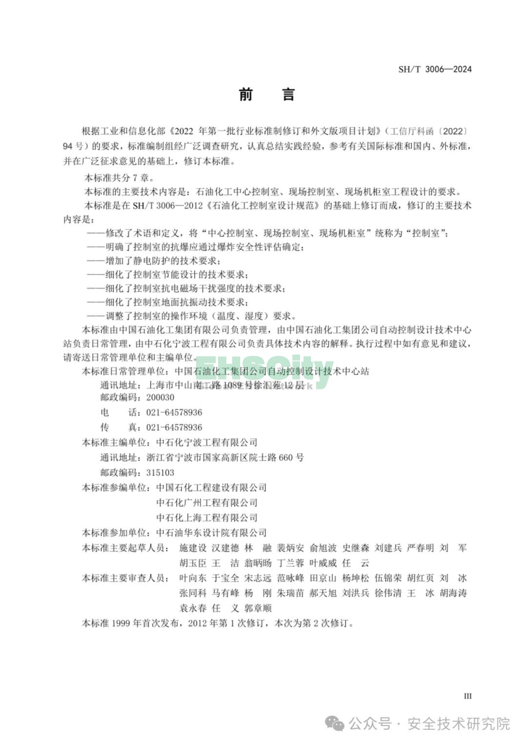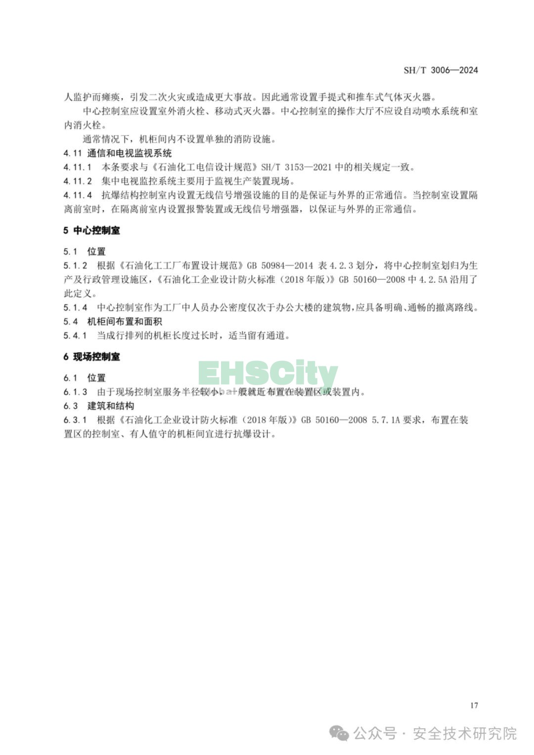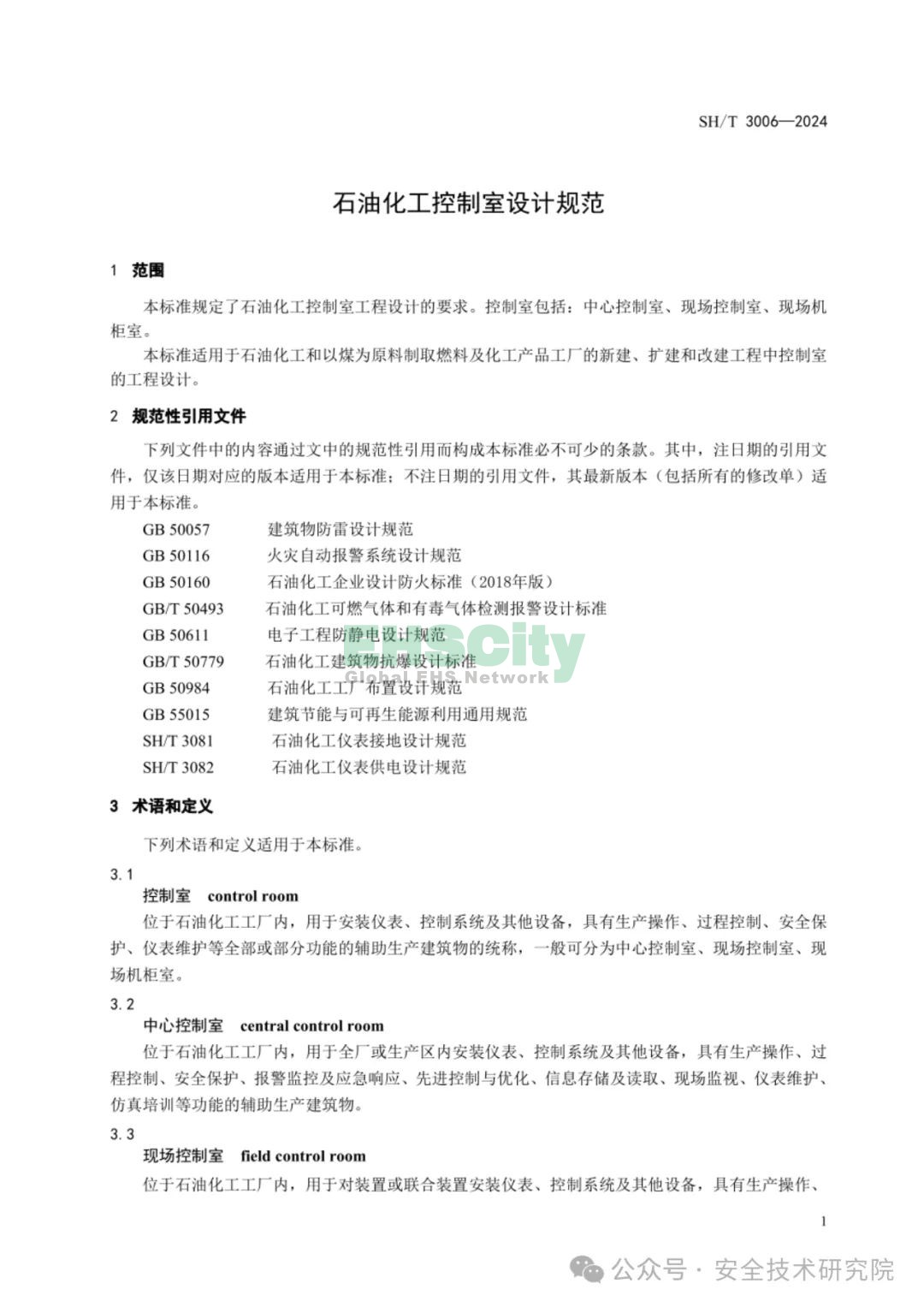 SH/T3006-2024《石油化工控制室設(shè)計(jì)規(guī)范》于2025年1月1日實(shí)施