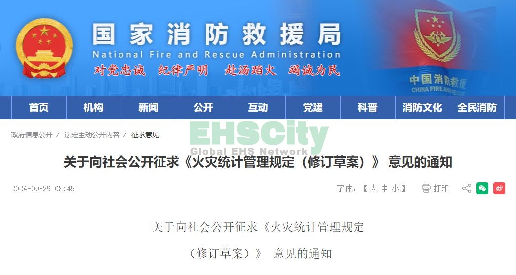 為加強和規(guī)范全國火災統(tǒng)計管理工作,充分發(fā)揮火災數(shù)據(jù)信息在完善公共安全體系,推動公共安全治理模式向事前預防轉(zhuǎn)型的重要作用,根據(jù)《中華人民共和國消防法》《中華人民共和國統(tǒng)計法》和有關(guān)法律法規(guī),國家消防救援局組織修訂了公安部、原勞動部、國家統(tǒng)計局于1996年聯(lián)合印發(fā)的《火災統(tǒng)計管理規(guī)定》(以下簡稱“《規(guī)定》”),并擬與相關(guān)部門聯(lián)合印發(fā)。公眾可在2024年10月29日前,通過以下途徑和方式提出意見:
