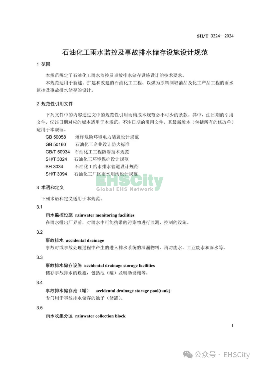 SH/T 3224-2024《石油化工雨水監(jiān)控及事故排水儲(chǔ)存設(shè)施設(shè)計(jì)規(guī)范》自2024-10-1施行