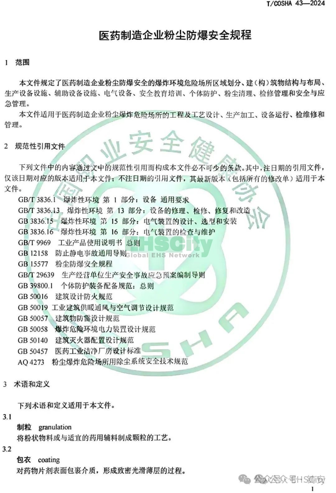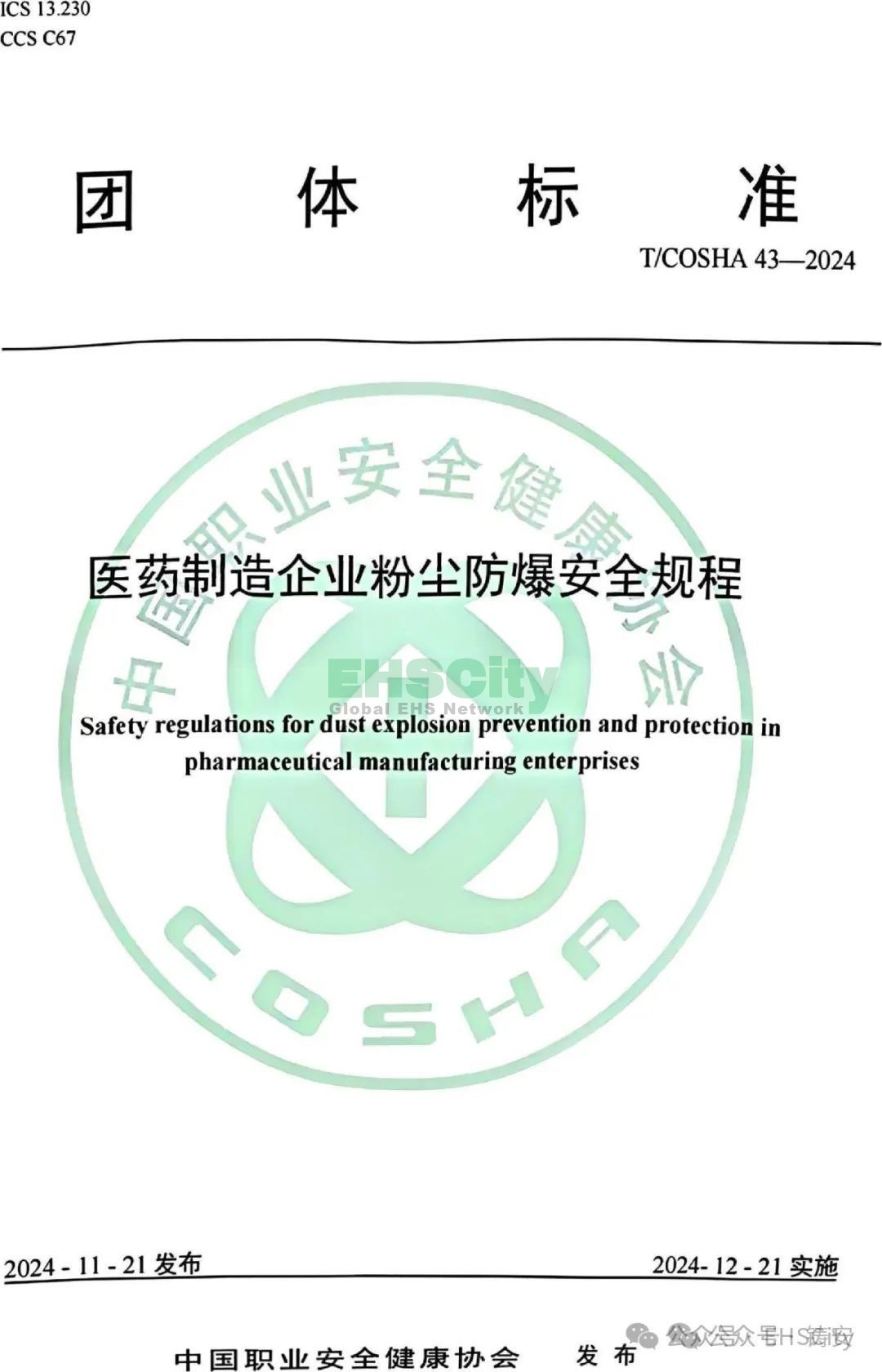 TCOSHA43-2024 醫(yī)藥制造企業(yè)粉塵防爆安全規(guī)程自2024-12-21施行