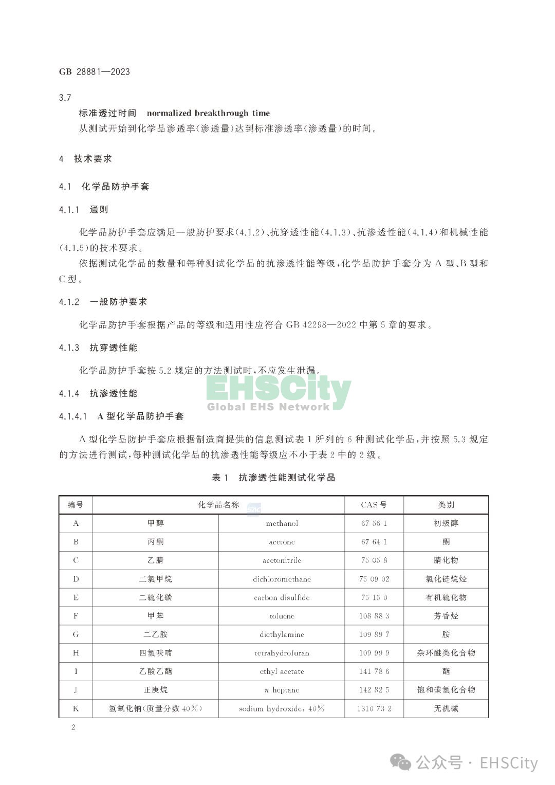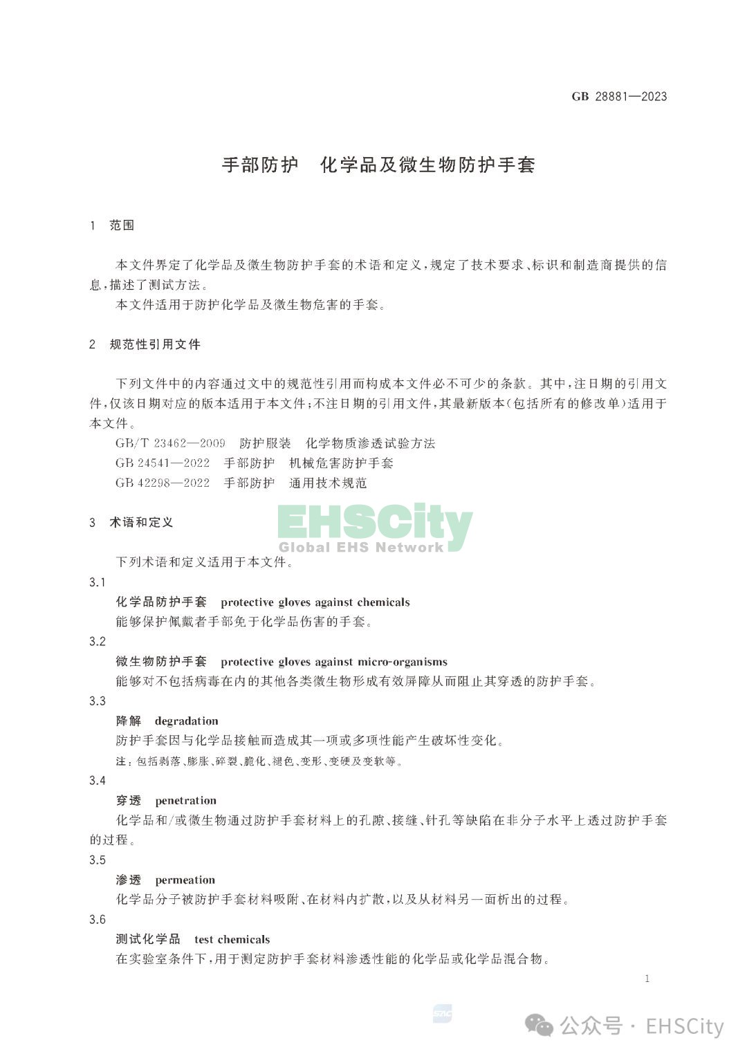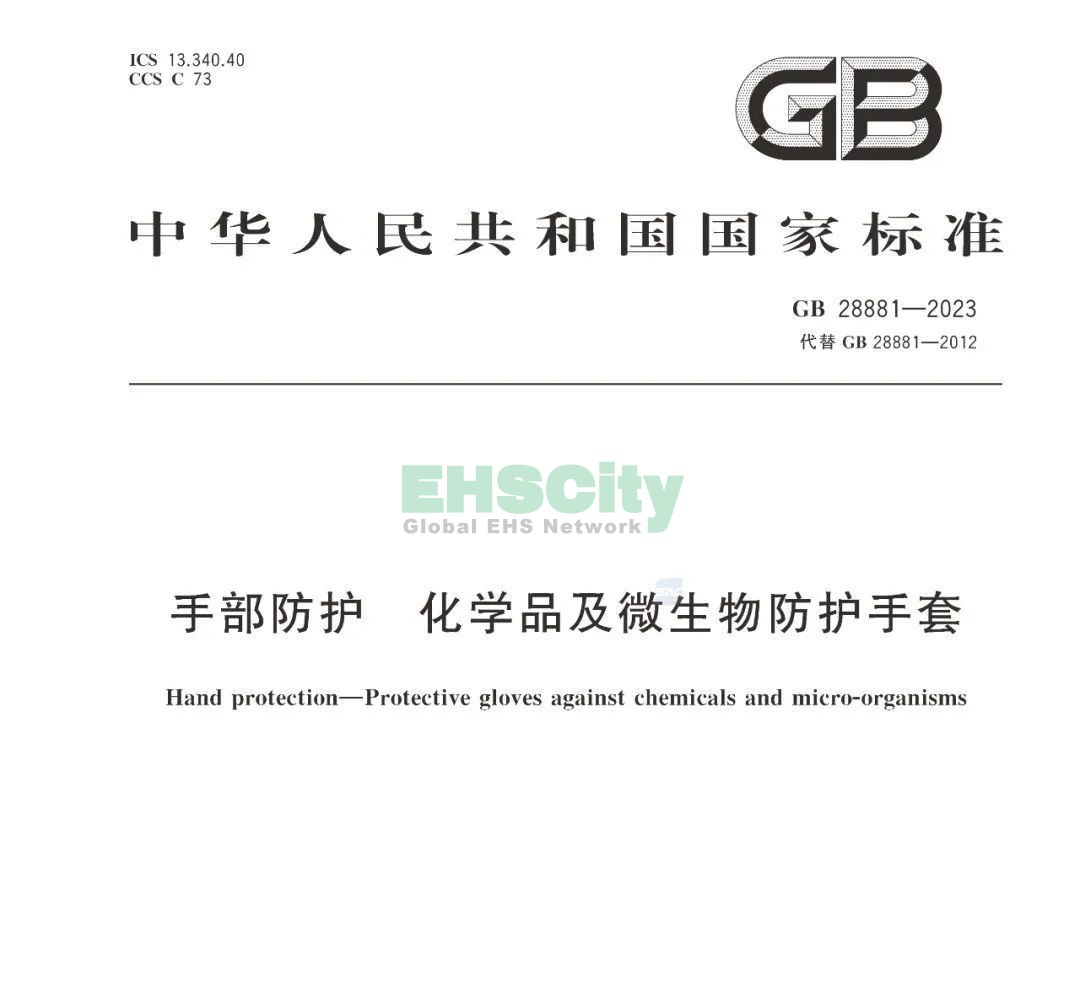 GB 28881-2023 手部防護(hù) 化學(xué)品及微生物防護(hù)手套 2025年1月1日生效