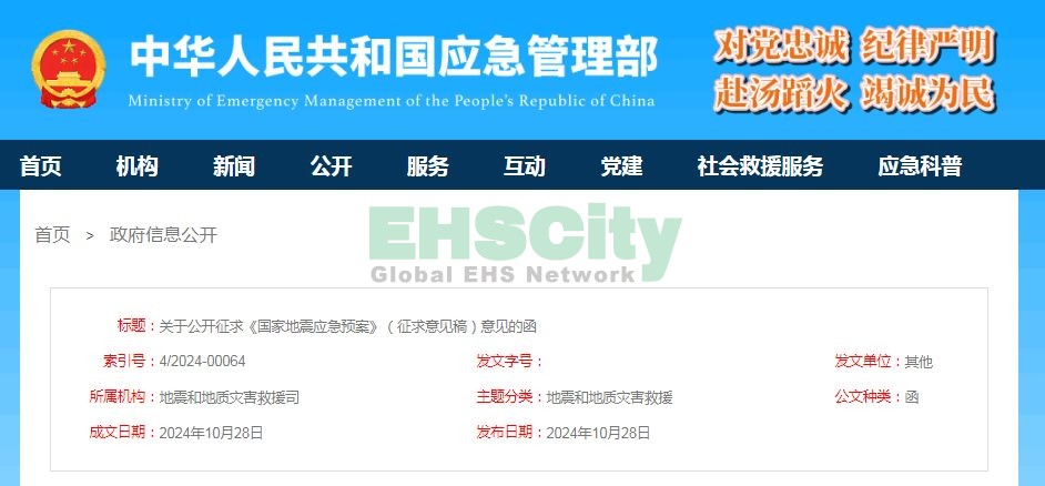 為適應(yīng)新形勢(shì)下地震應(yīng)急工作的需要,應(yīng)急管理部地震地質(zhì)司根據(jù)突發(fā)事件應(yīng)對(duì)法、防震減災(zāi)法等法律法規(guī)和國(guó)家突發(fā)事件總體應(yīng)急預(yù)案,并結(jié)合近年來(lái)地震災(zāi)害應(yīng)急響應(yīng)工作實(shí)踐,形成《國(guó)家地震應(yīng)急預(yù)案》(征求意見(jiàn)稿)(附件1)。現(xiàn)向社會(huì)公開(kāi)征求意見(jiàn),反饋意見(jiàn)請(qǐng)?zhí)顚?xiě)《征求意見(jiàn)表》(附件2),并發(fā)送至傳真010-83933564,截止時(shí)間為2024年11月29日。