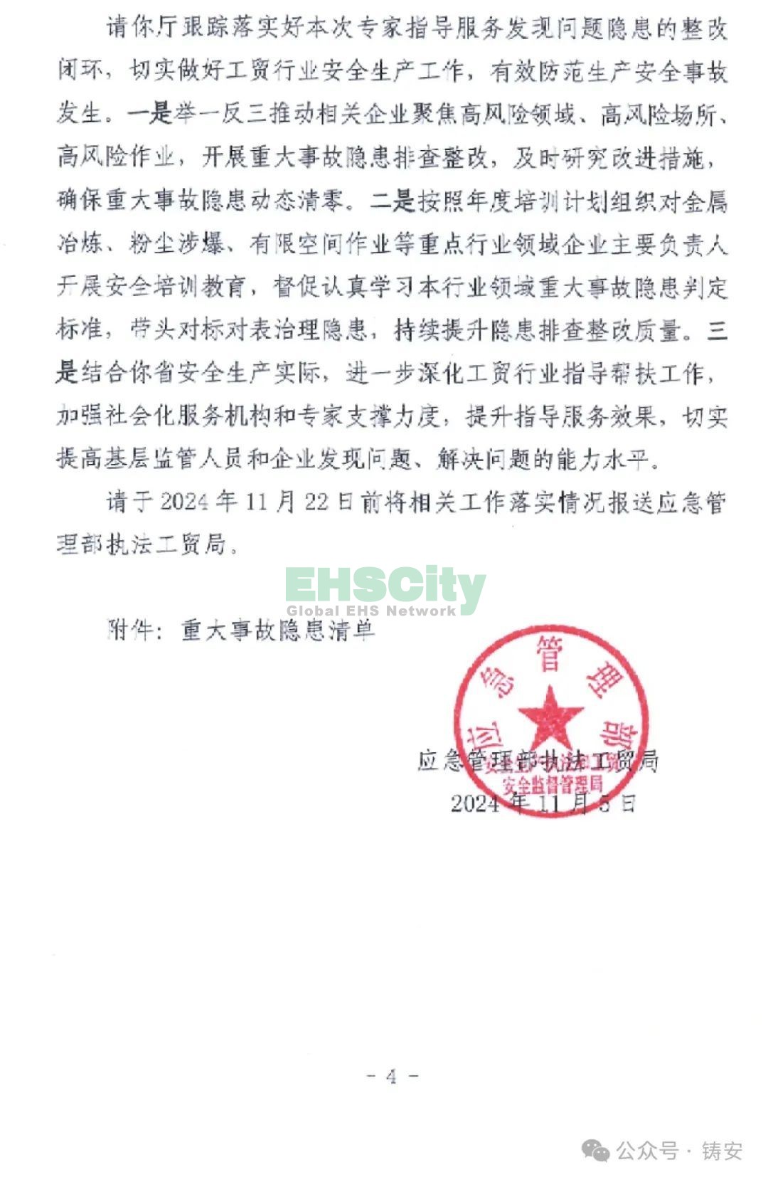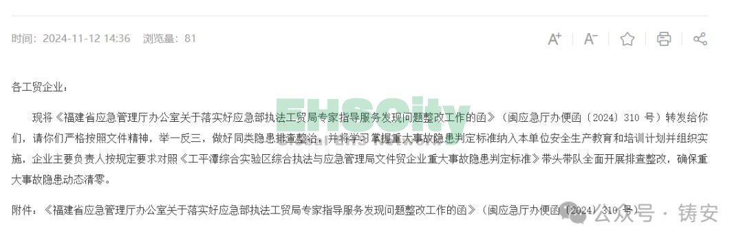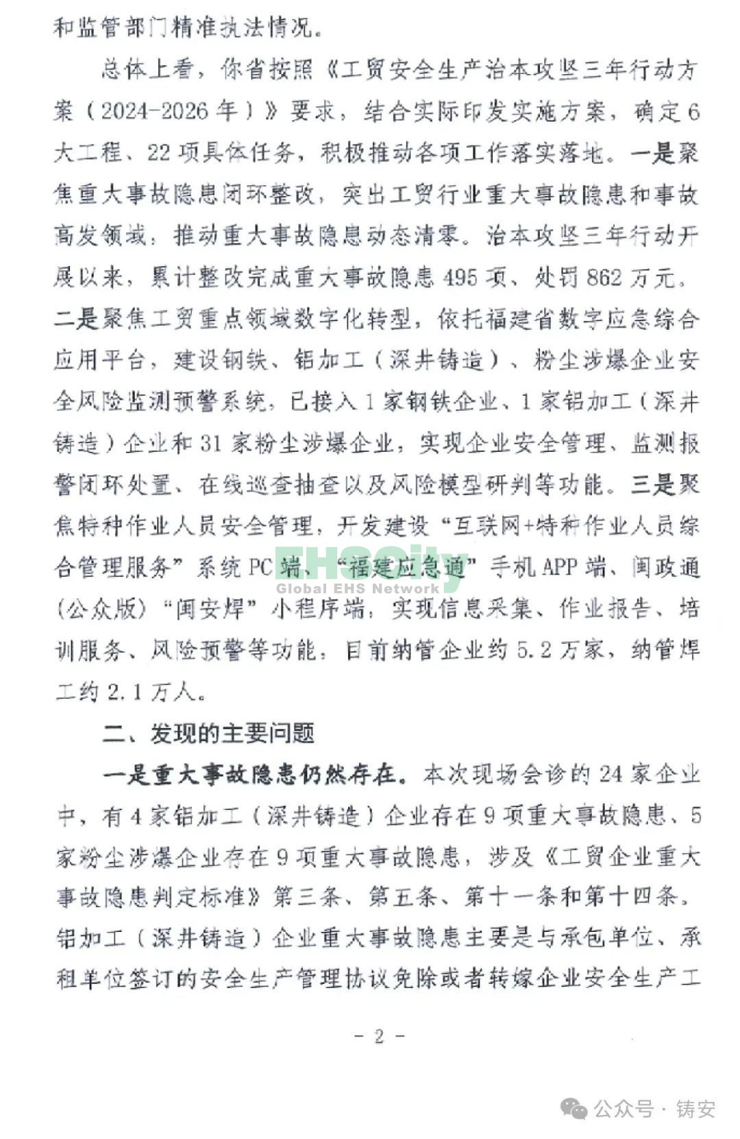 應(yīng)急部執(zhí)法工貿(mào)局專家指導(dǎo)服務(wù)福建省發(fā)現(xiàn)問題整改工作的函