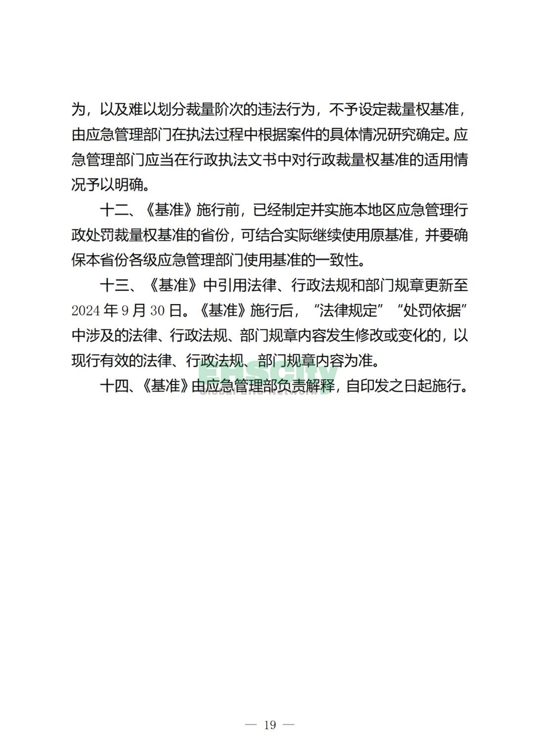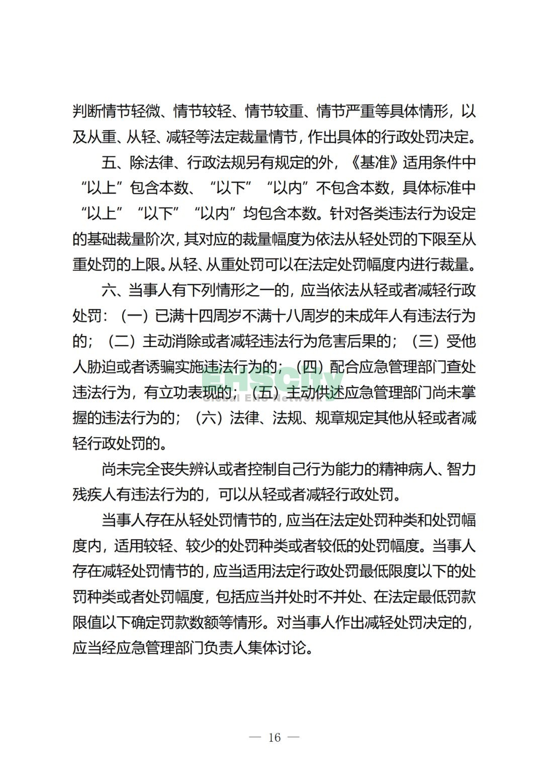 《應(yīng)急管理行政處罰裁量權(quán)基準(zhǔn)》的通知