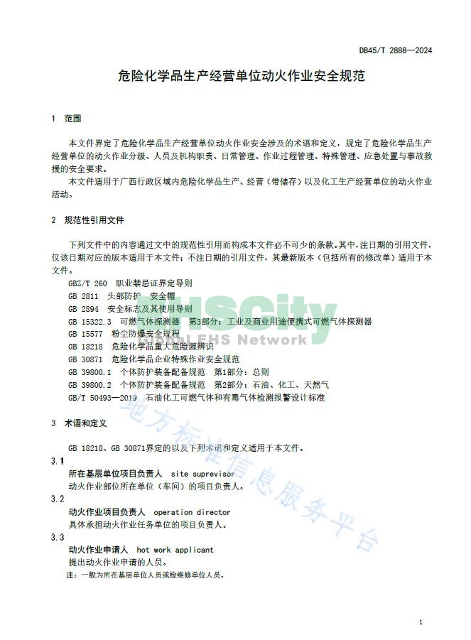 危險化學(xué)品生產(chǎn)經(jīng)營單位動火作業(yè)安全規(guī)范 DB45/T 2888-2024