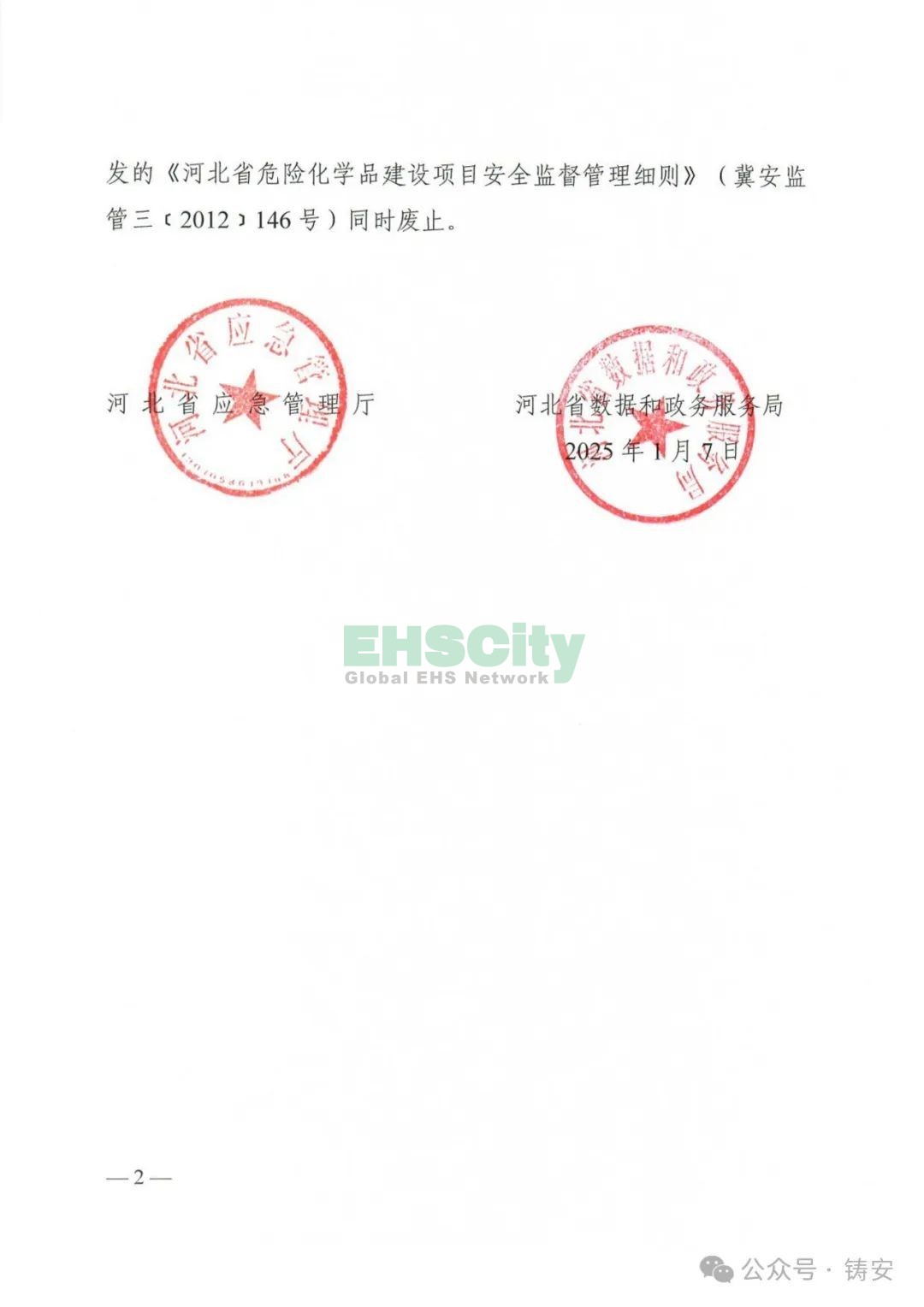 河北省應(yīng)急廳關(guān)于印發(fā)《河北省危險化學品建設(shè)項目安全監(jiān)督管理實施細則》的通知