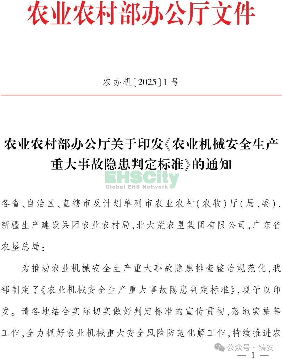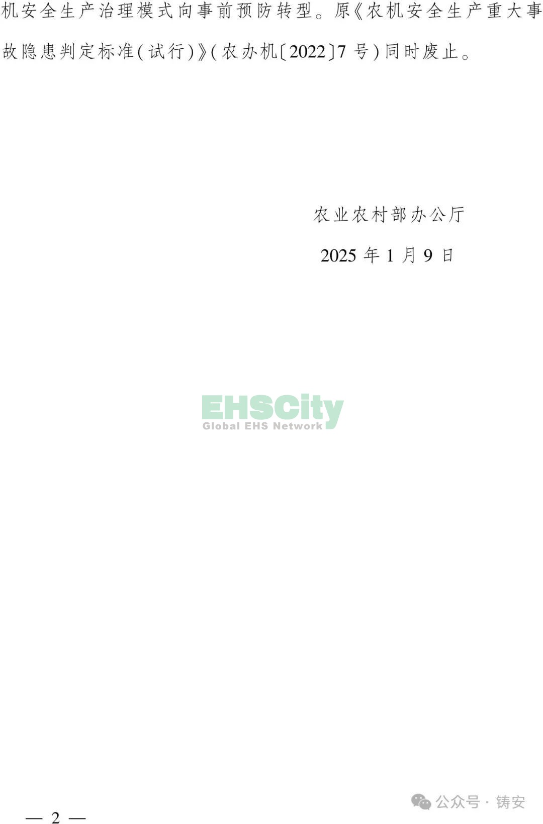 農(nóng)業(yè)農(nóng)村部關(guān)于印發(fā)《農(nóng)業(yè)機械安全生產(chǎn)重大事故隱患判定標準》的通知