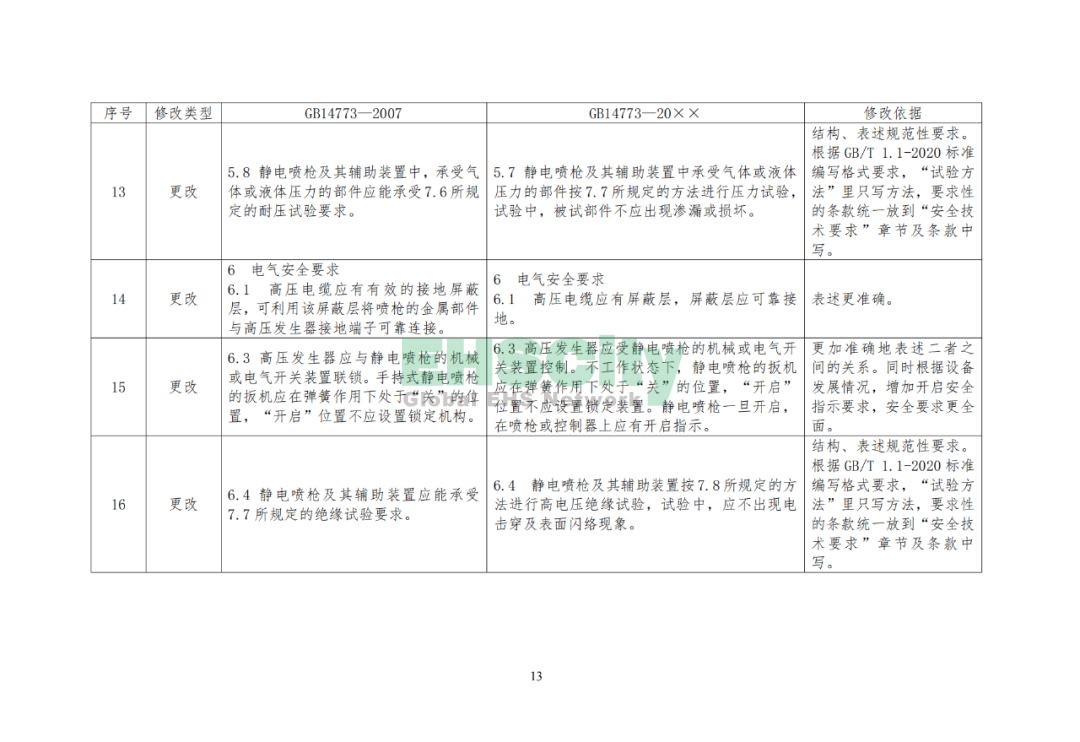 GB 14773《手持式靜電噴槍及其輔助裝置安全技術(shù)要求(征求意見稿)》及編制說(shuō)明