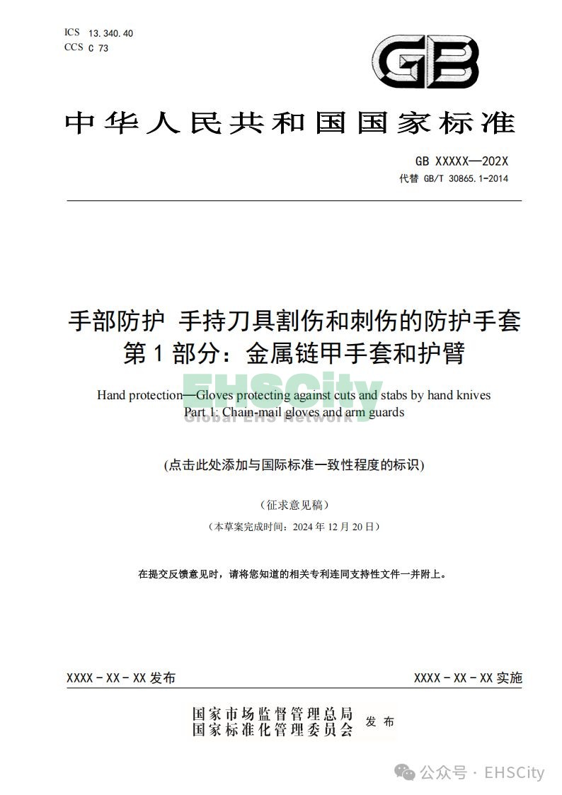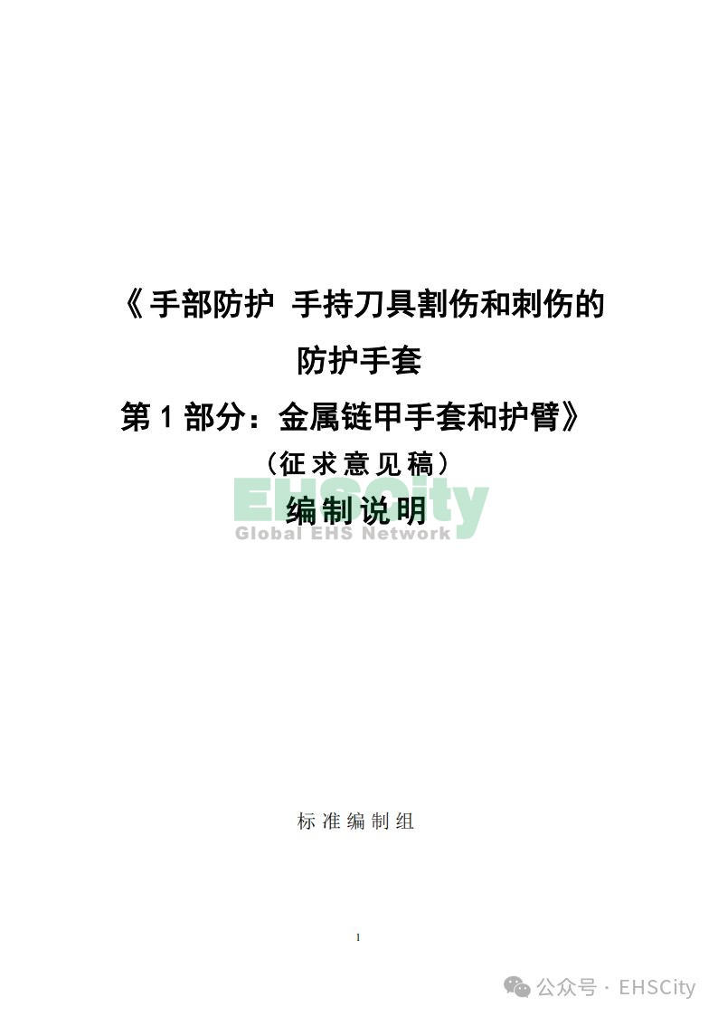 GB《手部防護(hù) 手持刀具割傷和刺傷的防護(hù)手套 第1部分:金屬鏈甲手套和護(hù)臂(征求意見稿)》及編制說明