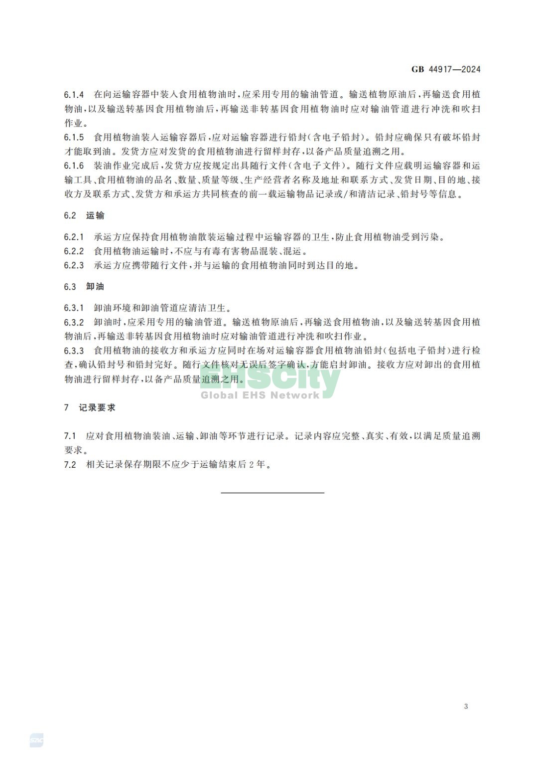 GB44917-2024 食用植物油散裝運(yùn)輸衛(wèi)生要求2025年2月1日實(shí)施