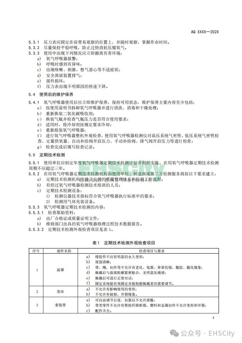 AQ 《呼吸防護(hù) 氧氣呼吸器安全使用維護(hù)技術(shù)規(guī)范(征求意見稿)》及編制說明