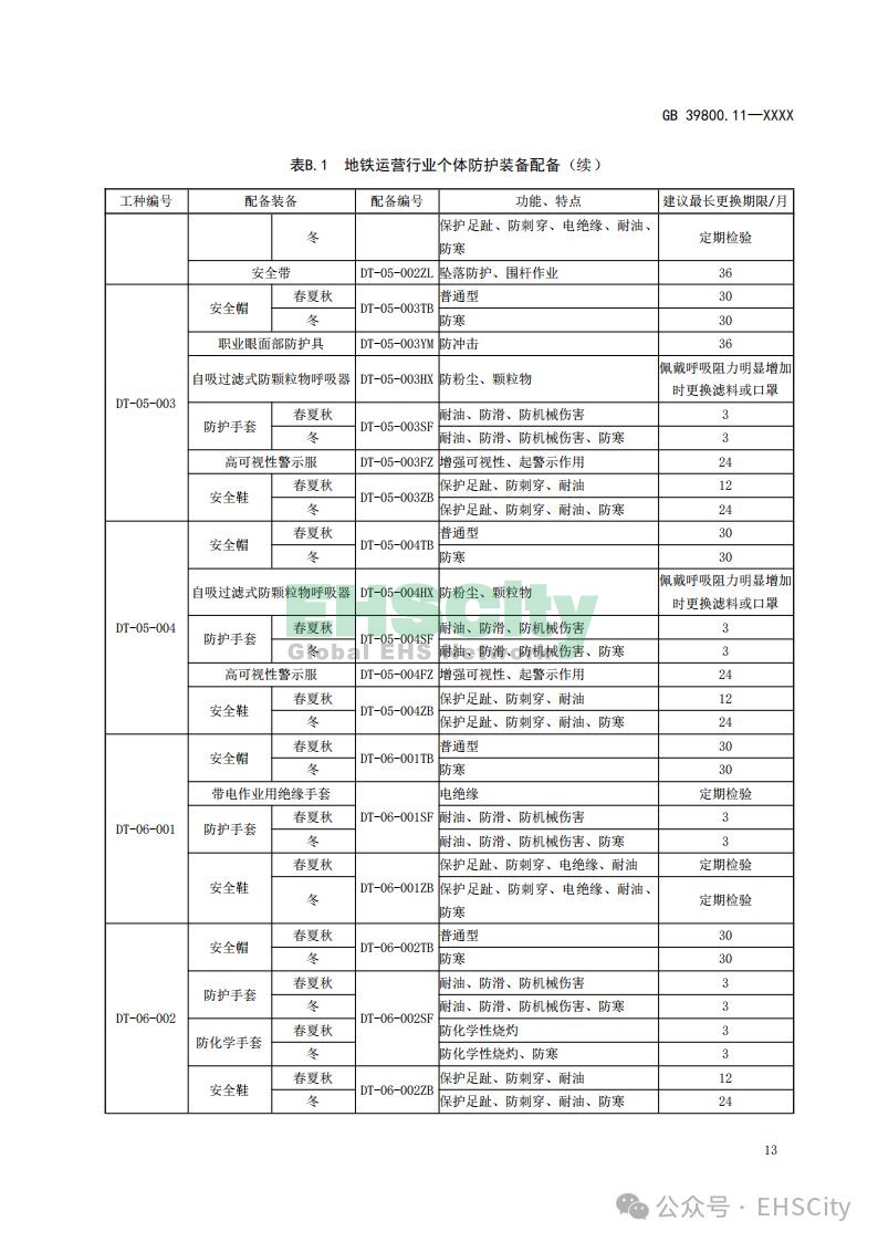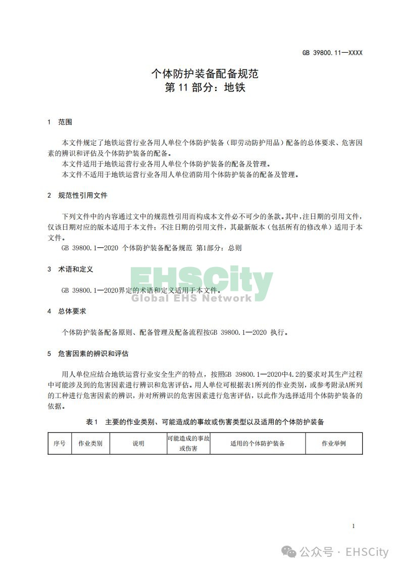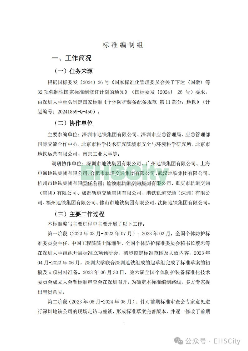 GB 39800.11《個(gè)體防護(hù)裝備配備規(guī)范 第11部分:地鐵(征求意見(jiàn)稿)》及編制說(shuō)明