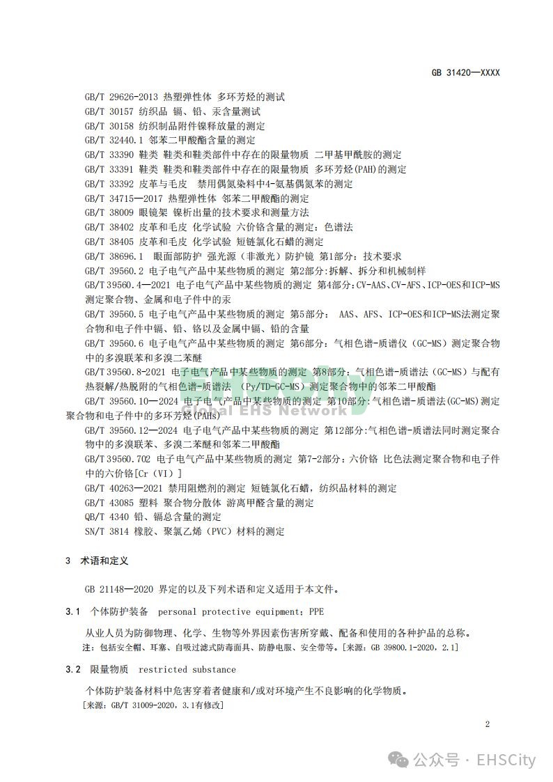 GB 31420《個(gè)體防護(hù)裝備有毒有害及限量物質(zhì)要求(征求意見稿)》及編制說明