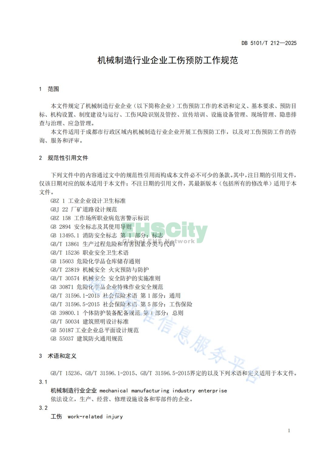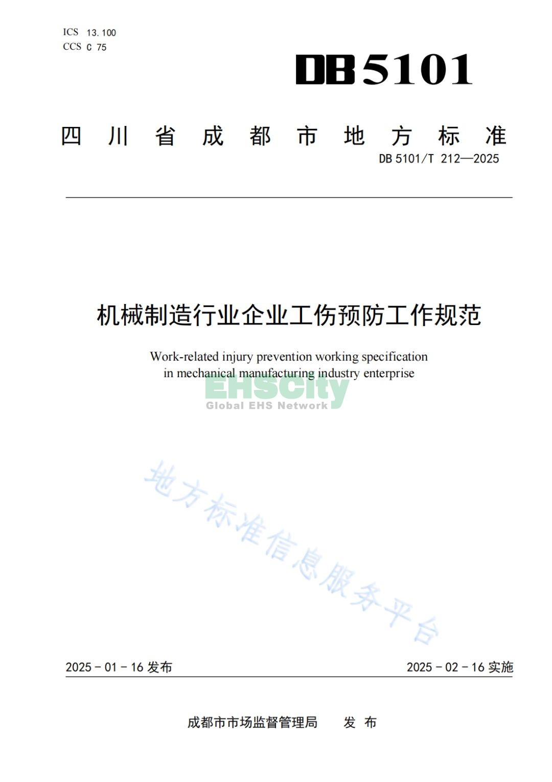 DB 5101/T 212-2025 機(jī)械制造行業(yè)企業(yè)工傷預(yù)防工作規(guī)范2025年2月16日實(shí)施