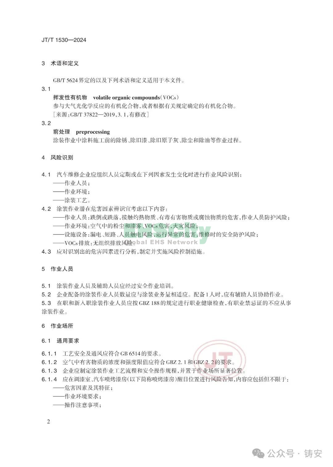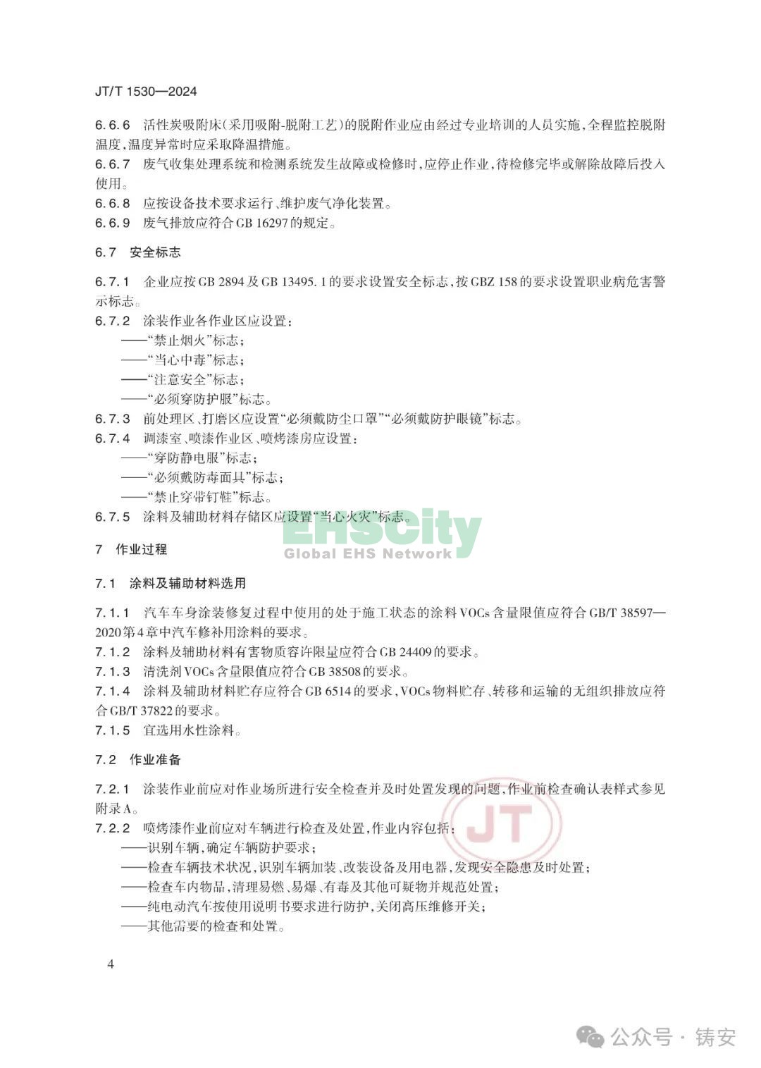 JTT1530-2024汽車車身涂裝作業(yè)安全及環(huán)境保護要求2025-3-1日實施