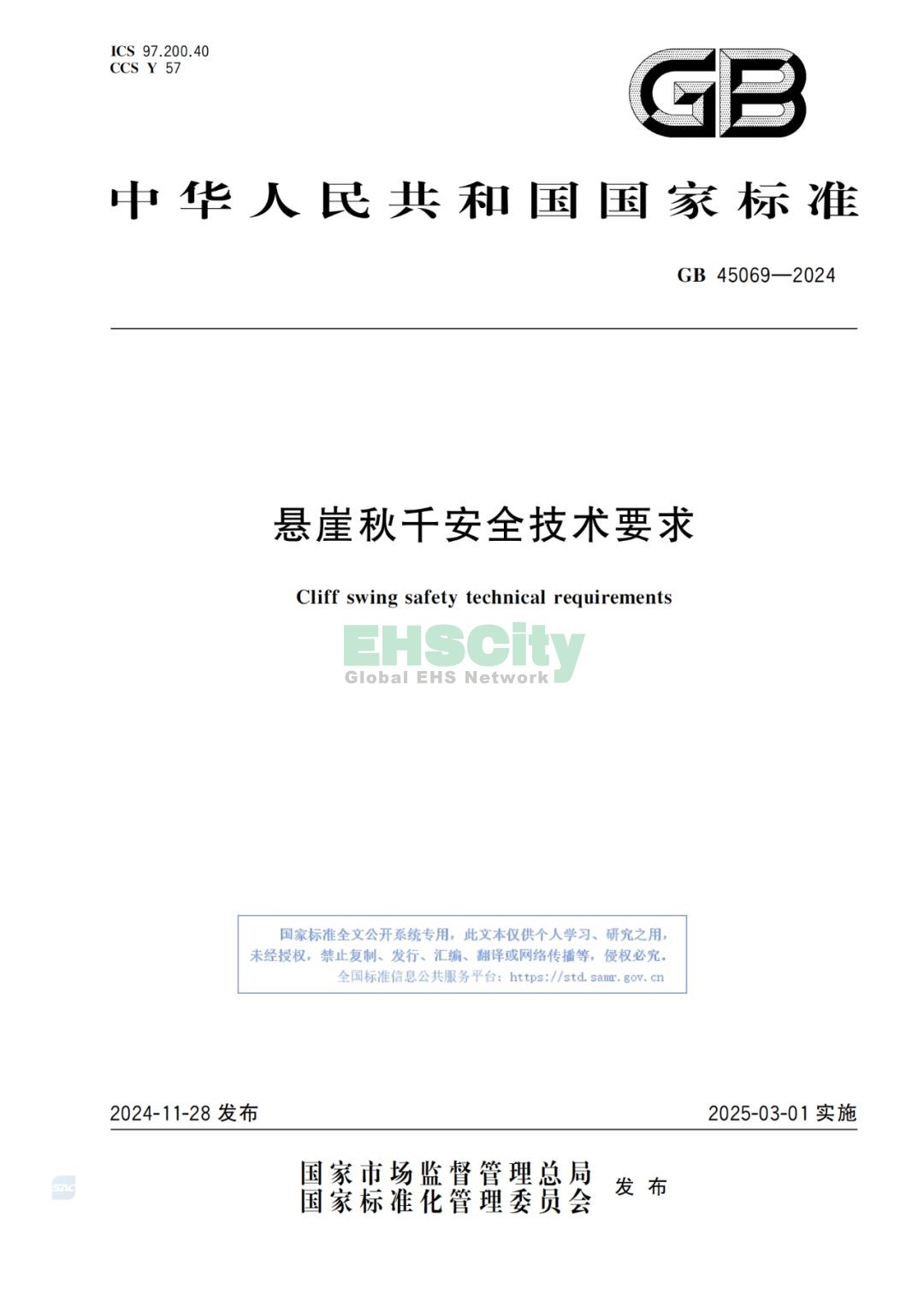 國(guó)家標(biāo)準(zhǔn)《懸崖秋千安全技術(shù)要求》 由424(市場(chǎng)監(jiān)管總局)歸口,委托TC250(全國(guó)索道與游樂(lè)設(shè)施標(biāo)準(zhǔn)化技術(shù)委員會(huì))執(zhí)行 。