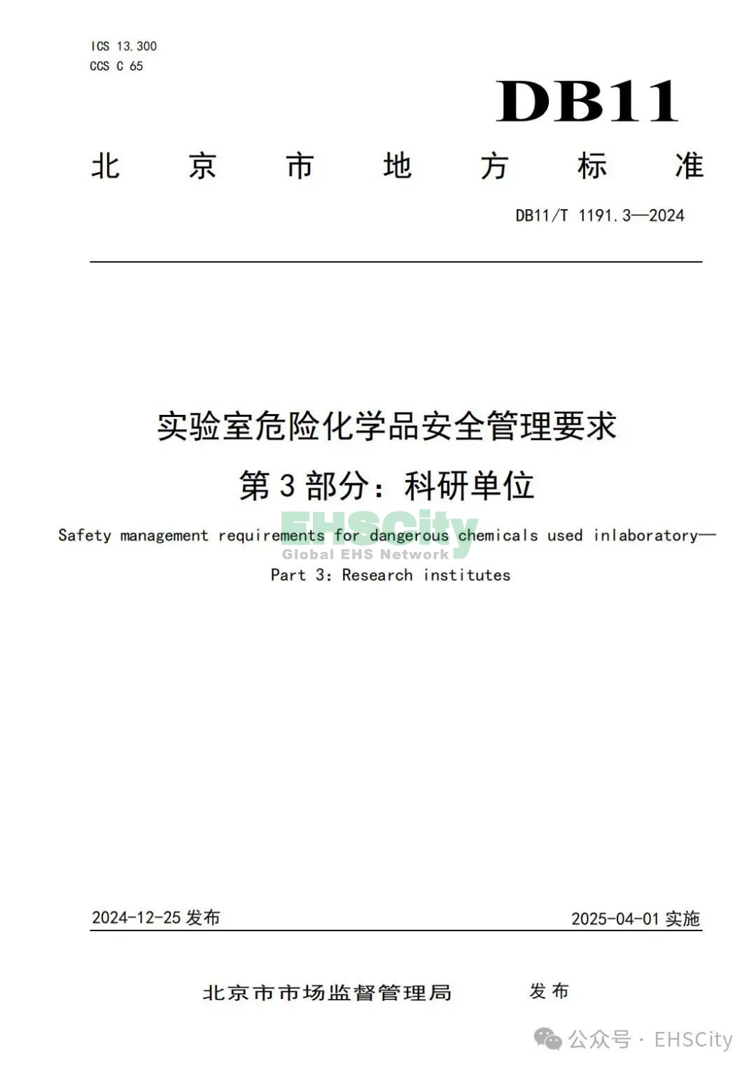 DB11/T 1191.3—2024 實(shí)驗(yàn)室危險(xiǎn)化學(xué)品安全管理要求 第3部分:科研單位 自2025-4-1實(shí)施