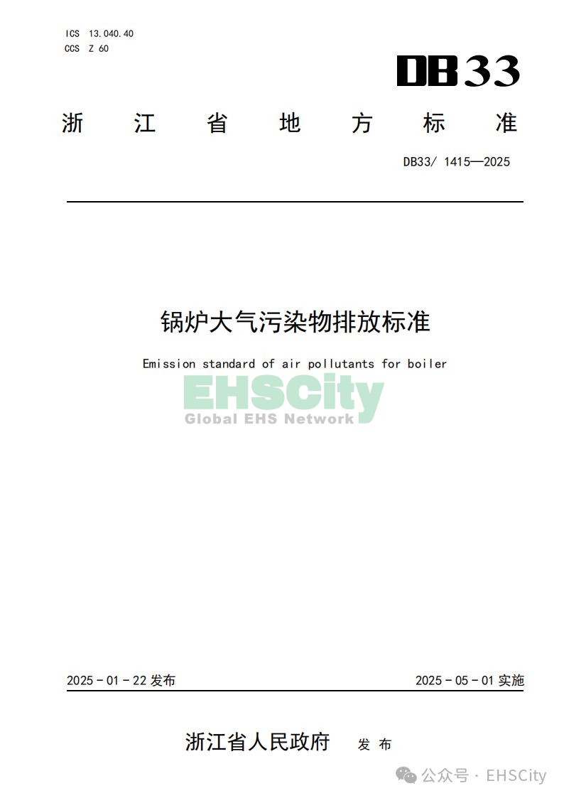 DB33/ 1415-2025鍋爐大氣污染物排放標(biāo)準(zhǔn)2025/5/1實(shí)施