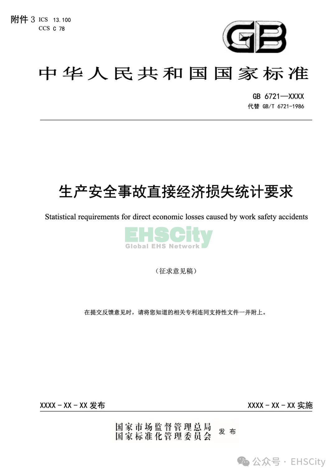 GB6721《生產(chǎn)安全事故直接經(jīng)濟損失統(tǒng)計要求(征求意見稿)》及編制說明