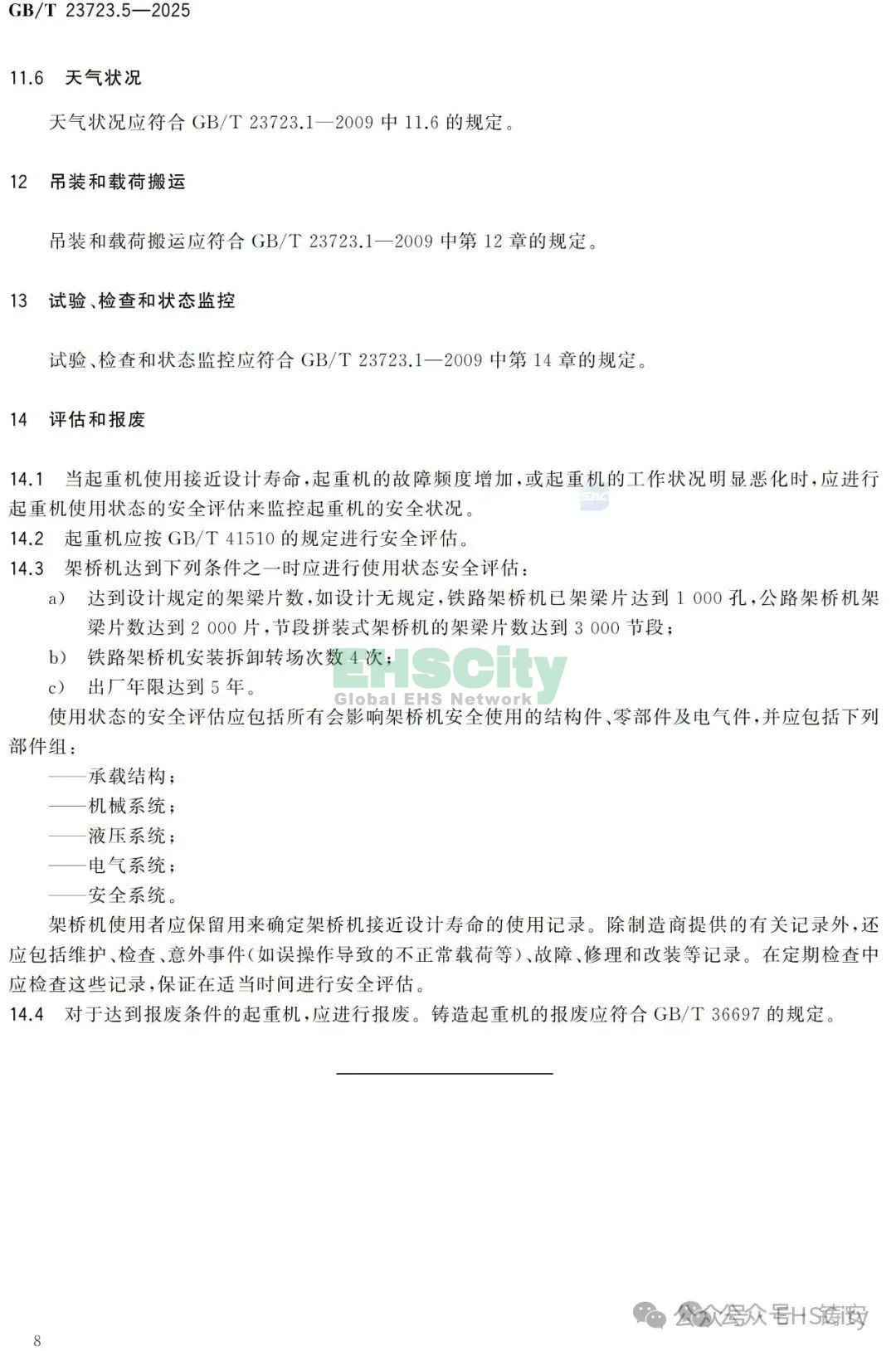 GBT23723.5-2025 起重機(jī) 安全使用 第5部分橋式和門式起重機(jī)2025年8月1日實(shí)施
